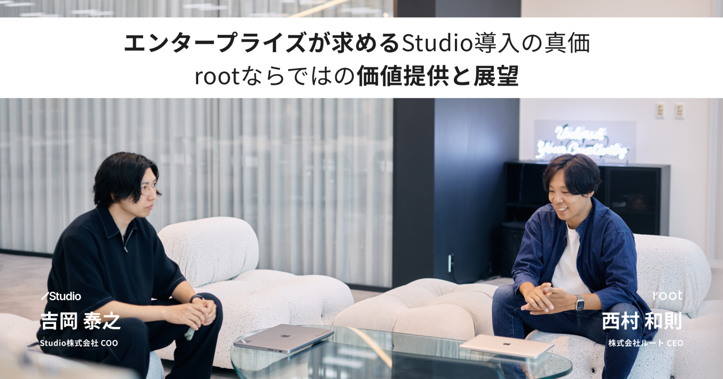 ビジョンrootが得てきた様々な知見をお届けします。ビジョンエンタープライズが求めるStudio導入の真価 ー rootならではの価値提供と展望【Studio×root対談インタビュー vol.3】#コミュニケーションデザイン#ブランディングデザイン#マーケティング#対談バリュー・カルチャービジョンデザイナーが次のキャリアを見失う理由 〜リーダーシップが突破の鍵〜#キャリア#マネジメント#事業価値づくり#組織の右腕ビジョンStudioの新機能がWeb運用の内製化を加速—プロからセミプロまでカバーする「Editor 5.0」【Studio×root対談インタビュー vol.2】#コミュニケーションデザイン#ブランディングデザイン#マーケティング#対談ビジョン「ノーコード×共創支援」でエンタープライズの内製化を加速——Studio×root連携の可能性【Studio×root対談インタビュー vol.1】#コミュニケーションデザイン#ブランディングデザイン#マーケティング#対談バリュー・カルチャービジョン事業を創り育てる当事者にデザイナーとしてどこまで近づけるか#サービスディベロップメントプロジェクト#デザインパートナープロジェクト#事業価値づくり#組織づくりビジョンビジネスとデザインを融合するデザイン浸透の道しるべ#UIUX#UIデザイン#UXデザイン#デザイナービジョンrootというデザインファームがインキュベーション運営に携わる理由#キャリア#スタートアップ#対談バリュー・カルチャービジョン創業12年目になったrootの現在地 – 事業と組織の成長を共に実現し、デザイン浸透を目指すために#事業価値づくり#共創#組織づくり#組織の右腕バリュー・カルチャービジョンroot Design Partnership Policy#サービスディベロップメントプロジェクト#デザインパートナープロジェクト#組織づくりすべてイベントケーススタディーナレッジ・ノウハウバリュー・カルチャービジョン 公開年を選択 2025 2024 2023 2022 2021 2020 2019 2018 2017 2016 2015 2014 2013 他にこんな記事も読まれていますケーススタディーPMFに向け、密なコミュニケーションで課題を共有。「Bizibl」のプロダクト開発を伴走支援ケーススタディーフラットな文化を最大限活かす、柔軟さと効率化のバランス感覚。「KARTE RightSupport」新規事業立ち上げに伴走ケーススタディーPdMやエンジニアもデザインを創る組織文化へ。「Secure SketCH」の事業拡大をプロセス改善とデザイン制作の二面から支援ケーススタディープロダクトを顧客目線で改善し続けるサイクルがチームへ定着。「マネーフォワード ケッサイ」におけるインサイトの発見や課題解決を支援ケーススタディーリアルとオンラインを融合し、「HiO ICE CREAM」の”美味しい”を伝えるECサイトをデザインするビジョンrootというデザインファームがインキュベーション運営に携わる理由一覧を見るSNSをフォローするFacebookXFeedly人気の記事デザイナーが次のキャリアを見失う理由 〜リーダーシップが突破の鍵〜380 views「ノーコード×共創支援」でエンタープライズの内製化を加速——Studio×root連携の可能性【Studio×root対談インタビュー vol.1】103 views万博の設計意図を読み解き、右腕デザイナーとして学び取り組んだこと〜Why Design Works・root課外研修編〜78 viewsコミュニケーションデザインとプロダクトデザインのマネジメントにおける共通項とデザインのアウトカム〜組織の右腕となるプロアクティブなデザインチームとは?rootラジオレポートVol.7〜71 viewsStudioの新機能がWeb運用の内製化を加速—プロからセミプロまでカバーする「Editor 5.0」【Studio×root対談インタビュー vol.2】44 views