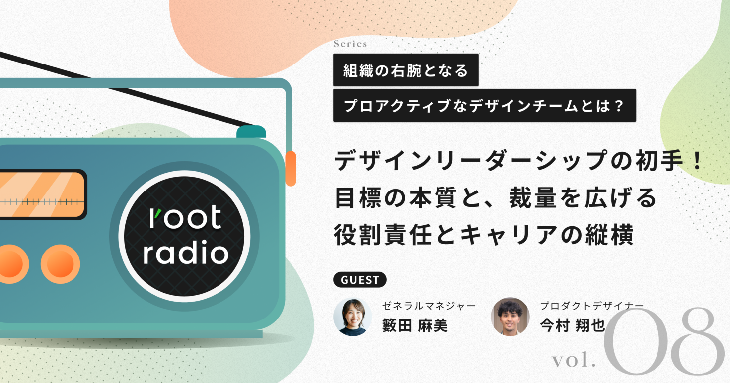 マネジメントイベントバリュー・カルチャーデザインリーダーシップの初手!目標の本質と、裁量を広げる役割責任とキャリアの縦横〜組織の右腕となるプロアクティブなデザインチームとは?rootラジオレポートVol.8〜#デザインパートナープロジェクト#マネジメント#事業価値づくりバリュー・カルチャービジョンデザイナーが次のキャリアを見失う理由 〜リーダーシップが突破の鍵〜#キャリア#マネジメント#事業価値づくり#組織の右腕イベントバリュー・カルチャーコミュニケーションデザインとプロダクトデザインのマネジメントにおける共通項とデザインのアウトカム〜組織の右腕となるプロアクティブなデザインチームとは?rootラジオレポートVol.7〜#デザインパートナープロジェクト#マネジメント#事業価値づくりイベントバリュー・カルチャープロダクトの「未来」を描き、デザイナーと共に「価値」を生み出すPdMの実践〜組織の右腕となるプロアクティブなデザインチームとは?rootラジオVol.6〜#PdM#デザインパートナープロジェクト#マネジメント#事業価値づくりイベントバリュー・カルチャーアウトプットだけではないアウトカムの創出への責任と組織やプロダクトへの愛着〜組織の右腕となるプロアクティブなデザインチームとは?rootラジオレポートVol.5〜#デザインパートナープロジェクト#マネジメント#事業価値づくり#共創イベントバリュー・カルチャー正解のないマネジメントの楽しさと、チームのプロアクティブさを育む基準づくり〜マネジメント視点で考えるEA事業価値に寄与するデザインとは?rootラジオVol.4〜#rootラジオ#マネジメント#事業価値づくり#共創イベントバリュー・カルチャー事業と組織における短期的な成果の最大化と長期的な成長投資となるマネジメントのロードマップ〜マネジメント視点で考える事業価値に寄与するデザインとは?rootラジオレポートVol.3〜#rootラジオ#マネジメント#事業価値#共創イベントバリュー・カルチャーAI時代におけるデザイナーのアウトカム志向と、AIと共創し組織知を高めるこれからの組織づくり〜AI時代の価値をつくるデザインとは?rootラジオVol.2〜#AI#rootラジオ#キャリア#マネジメントナレッジ・ノウハウ組織全体で個人の熟達を後押しするには?組織拡大をめざすrootが、全社で取り組むナレッジマネジメント#マネジメント#組織学習イベントデザイン組織づくりにおける育成・マネジメントの考え方とは? root Design Meetup vol.2#マネジメント#組織デザイン12次へすべてイベントケーススタディーナレッジ・ノウハウバリュー・カルチャービジョン 公開年を選択 2025 2024 2023 2022 2021 2020 2019 2018 2017 2016 2015 2014 2013 他にこんな記事も読まれていますケーススタディーPMFに向け、密なコミュニケーションで課題を共有。「Bizibl」のプロダクト開発を伴走支援ケーススタディーフラットな文化を最大限活かす、柔軟さと効率化のバランス感覚。「KARTE RightSupport」新規事業立ち上げに伴走ケーススタディーPdMやエンジニアもデザインを創る組織文化へ。「Secure SketCH」の事業拡大をプロセス改善とデザイン制作の二面から支援ケーススタディープロダクトを顧客目線で改善し続けるサイクルがチームへ定着。「マネーフォワード ケッサイ」におけるインサイトの発見や課題解決を支援ケーススタディーリアルとオンラインを融合し、「HiO ICE CREAM」の”美味しい”を伝えるECサイトをデザインするイベントバリュー・カルチャー「わかる」から「できる」へ。実践から対話力を磨く1ON1マネージャー研修を開催!一覧を見るSNSをフォローするFacebookXFeedly人気の記事デザイナーが次のキャリアを見失う理由 〜リーダーシップが突破の鍵〜741 views「ノーコード×共創支援」でエンタープライズの内製化を加速——Studio×root連携の可能性【Studio×root対談インタビュー vol.1】108 views事業を導くプロアクティブなデザインリーダーの条件〜「Designship 2025」スポンサーセッションレポート〜104 views万博の設計意図を読み解き、右腕デザイナーとして学び取り組んだこと〜Why Design Works・root課外研修編〜93 viewsStudioの新機能がWeb運用の内製化を加速—プロからセミプロまでカバーする「Editor 5.0」【Studio×root対談インタビュー vol.2】48 views
